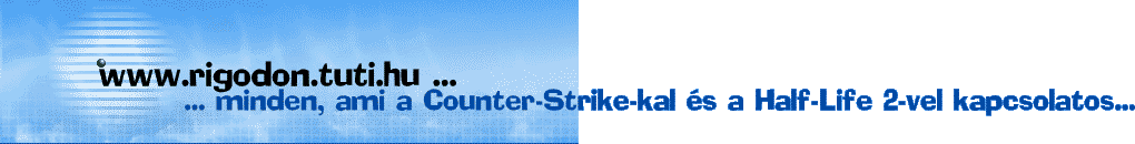 Szia! CSÉ hozott a rigodon.tuti.hu oldalon! Yó böngészést kivánok! :)Na tehát akkor itt van a honlapom, ahol sok cuccot találsz, ami főleg a Counter-Strike-al kapcsolatos... :) Ya, és még találsz Half-Life 2 képeket!!! Gyönyőködj bennük, mert olyan faszák, hogy el se tudom mondani! :D Nem is fecsérlem többet a szót! A menükben megtalálsz mindent... :D
